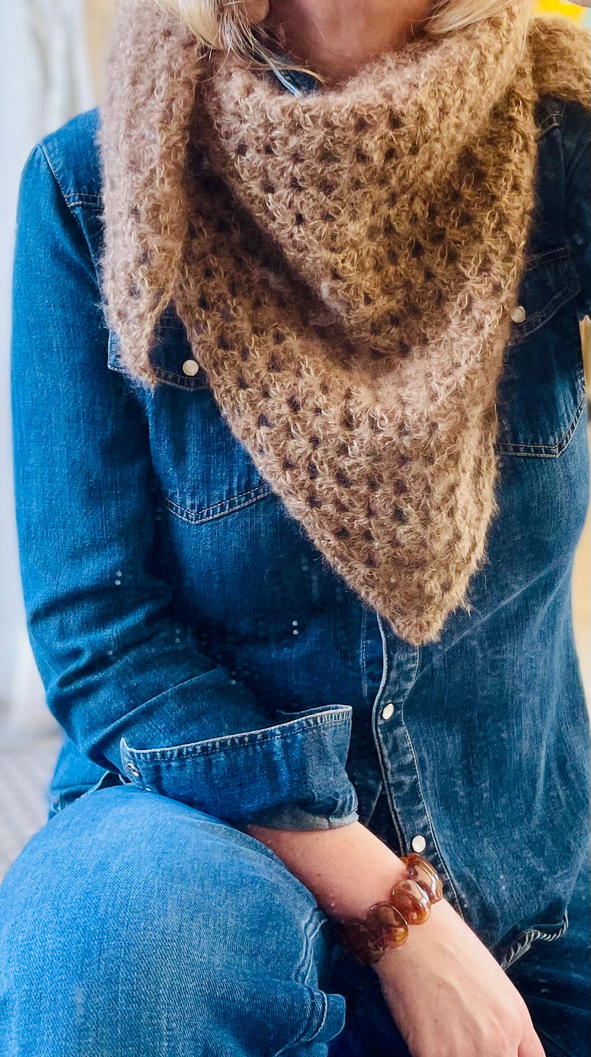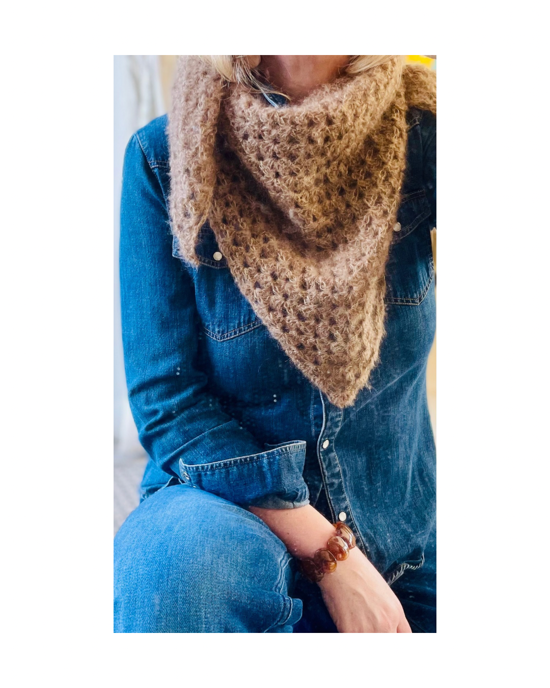 Les Nuages de Normandie sont crochetés à la main en petites séries dans le bocage normand , dans une laine mohair et soie issue de chevreaux élevés en Normandie.